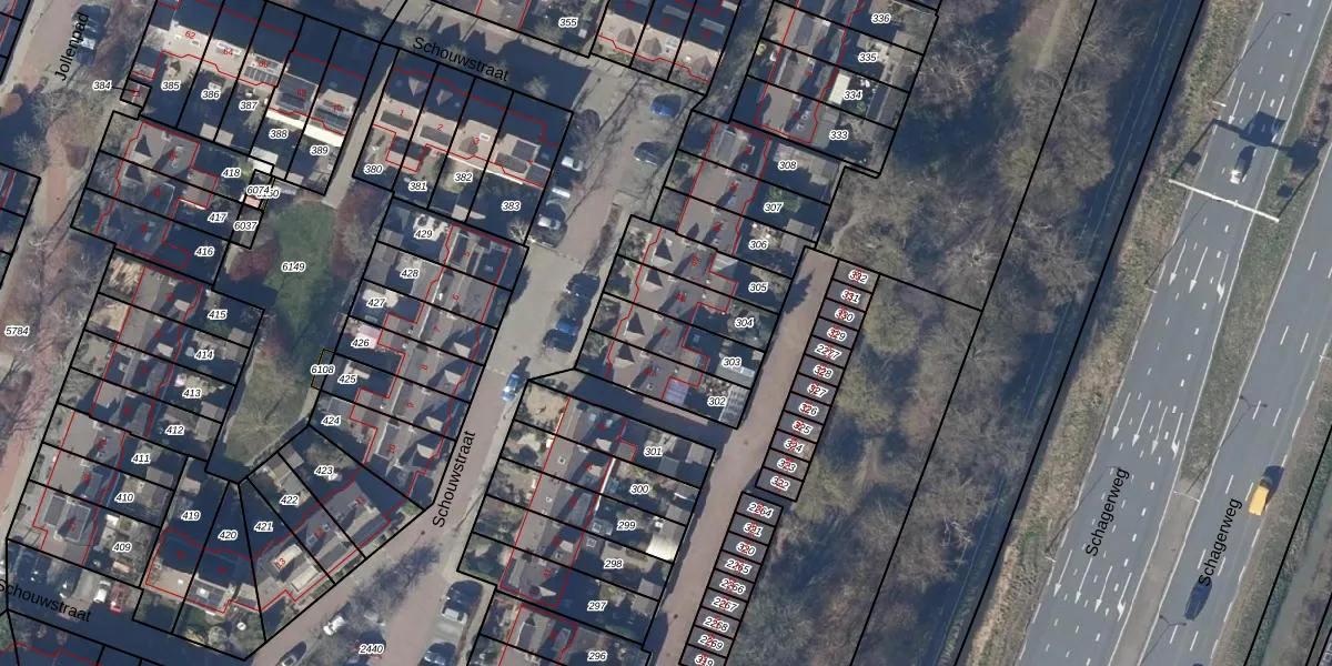 Het perceel waarop Schouwstraat 47 staat heeft een oppervlakte van 156 m². Dit is een middelgroot perceel. De perceeloppervlakte wordt geregistreerd door het Kadaster. Gedetailleerde informatie over de maten van dit perceel kunt u vinden in het rapport Kadastrale kaart met maatvoering van Schouwstraat 47.