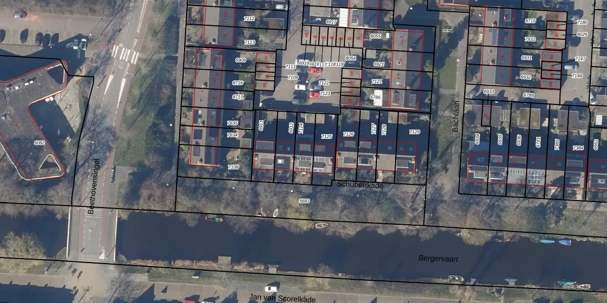Gebruik de zoekbalk of klik op een perceel voor informatie over de adressen binnen dit perceel.