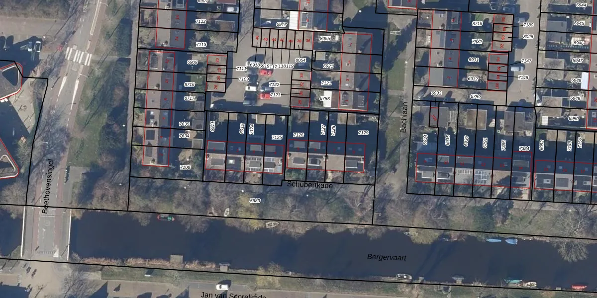 Het perceel waarop Schubertkade 5 staat heeft een oppervlakte van 173 m². Dit is een middelgroot perceel. De perceeloppervlakte wordt geregistreerd door het Kadaster. Gedetailleerde informatie over de maten van dit perceel kunt u vinden in het rapport Kadastrale kaart met maatvoering van Schubertkade 5.