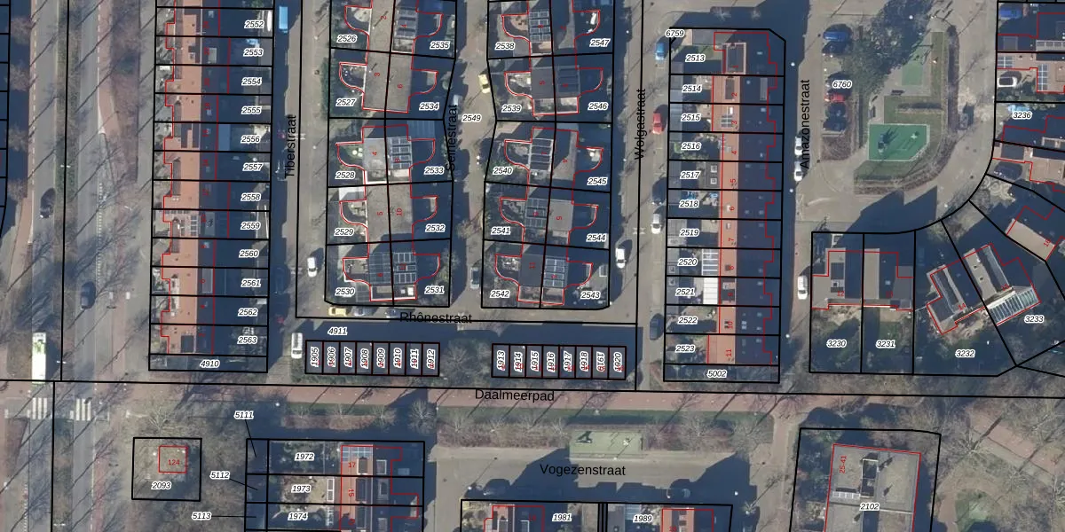 Gebruik de zoekbalk of klik op een perceel voor informatie over de adressen binnen dit perceel.