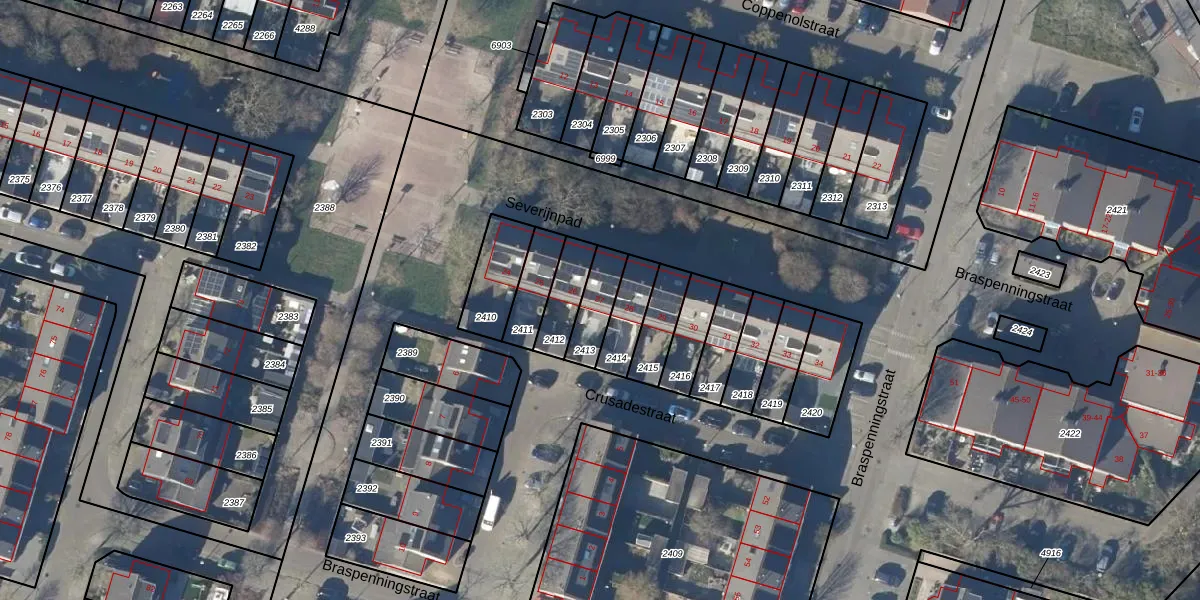 Het perceel waarop Severijnpad 27 staat heeft een oppervlakte van 107 m². Dit is een middelgroot perceel. De perceeloppervlakte wordt geregistreerd door het Kadaster. Gedetailleerde informatie over de maten van dit perceel kunt u vinden in het rapport Kadastrale kaart met maatvoering van Severijnpad 27.
