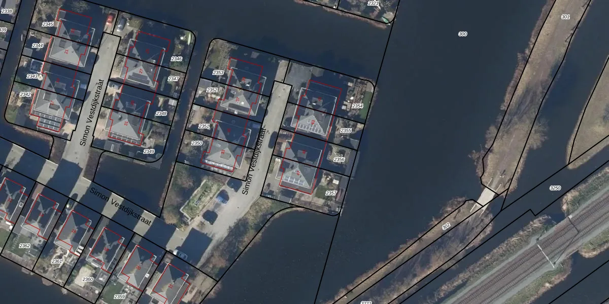Het perceel waarop Simon Vestdijkstraat 45 staat heeft een oppervlakte van 239 m². Dit is een middelgroot perceel. De perceeloppervlakte wordt geregistreerd door het Kadaster. Gedetailleerde informatie over de maten van dit perceel kunt u vinden in het rapport Kadastrale kaart met maatvoering van Simon Vestdijkstraat 45.