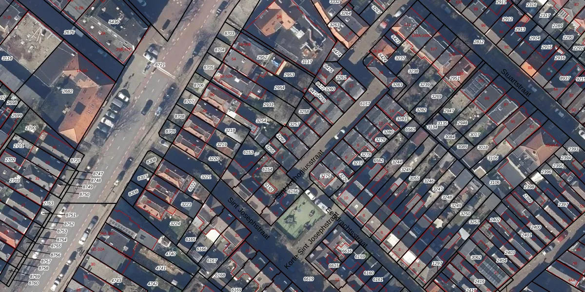 Gebruik de zoekbalk of klik op een perceel voor informatie over de adressen binnen dit perceel.