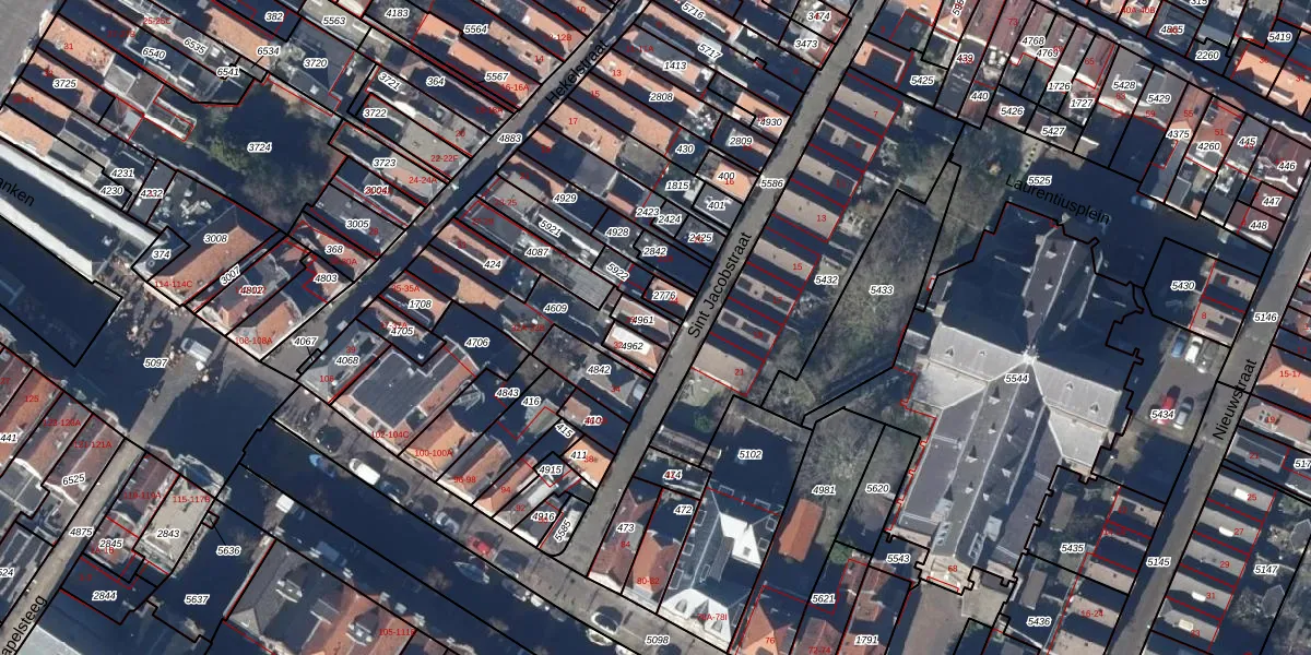 Het perceel waarop Sint Jacobstraat 26 staat heeft een oppervlakte van 42 m². Dit is een klein perceel. De perceeloppervlakte wordt geregistreerd door het Kadaster. Gedetailleerde informatie over de maten van dit perceel kunt u vinden in het rapport Kadastrale kaart met maatvoering van Sint Jacobstraat 26.