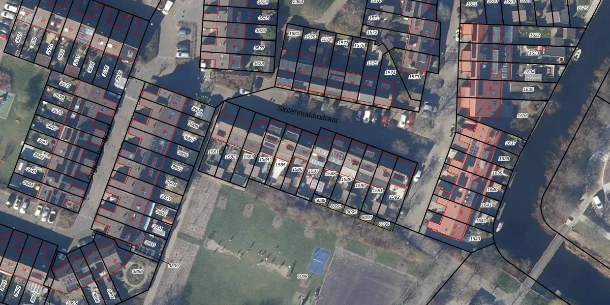 Het perceel waarop Slotenmakerstraat 65 staat heeft een oppervlakte van 114 m². Dit is een middelgroot perceel. De perceeloppervlakte wordt geregistreerd door het Kadaster. Gedetailleerde informatie over de maten van dit perceel kunt u vinden in het rapport Kadastrale kaart met maatvoering van Slotenmakerstraat 65.