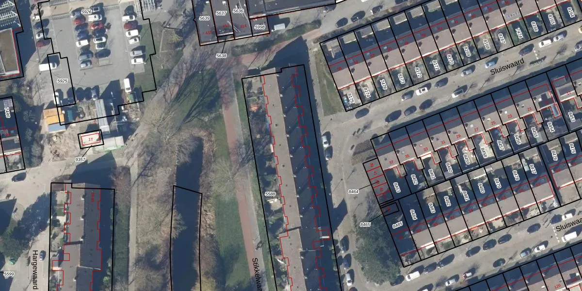 Het perceel waarop Sluiswaard 64 staat heeft een oppervlakte van 1904 m². Dit is een zeer groot perceel. De perceeloppervlakte wordt geregistreerd door het Kadaster. Gedetailleerde informatie over de maten van dit perceel kunt u vinden in het rapport Kadastrale kaart met maatvoering van Sluiswaard 64.