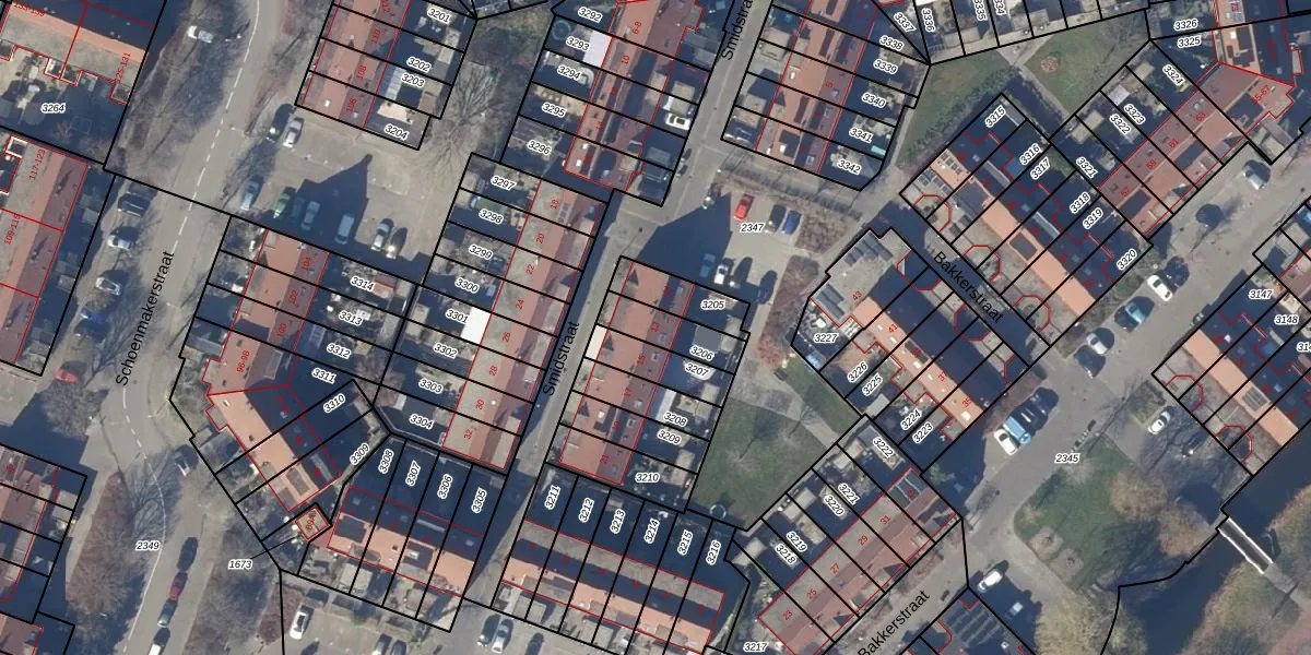 Het perceel waarop Smidstraat 13 staat heeft een oppervlakte van 122 m². Dit is een middelgroot perceel. De perceeloppervlakte wordt geregistreerd door het Kadaster. Gedetailleerde informatie over de maten van dit perceel kunt u vinden in het rapport Kadastrale kaart met maatvoering van Smidstraat 13.