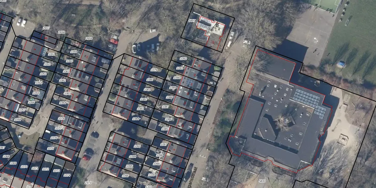 Gebruik de zoekbalk of klik op een perceel voor informatie over de adressen binnen dit perceel.