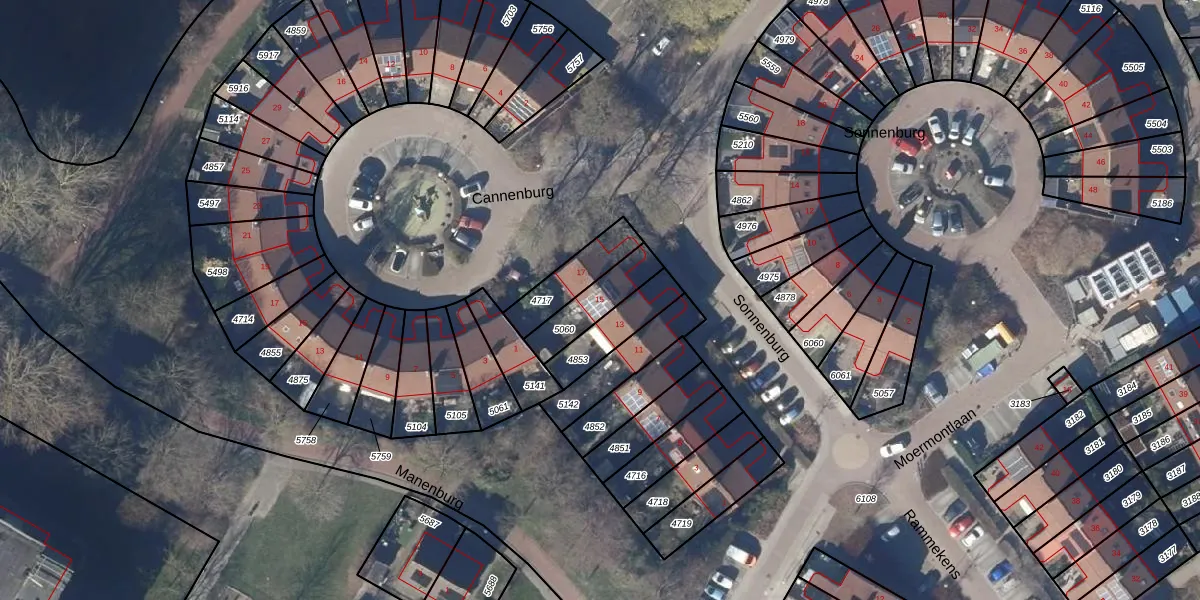 Gebruik de zoekbalk of klik op een perceel voor informatie over de adressen binnen dit perceel.