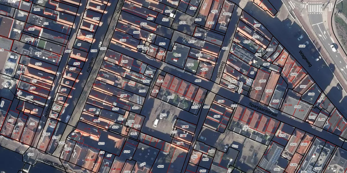 Het perceel waarop Spanjaardstraat 33 staat heeft een oppervlakte van 329 m². Dit is een groot perceel. De perceeloppervlakte wordt geregistreerd door het Kadaster. Gedetailleerde informatie over de maten van dit perceel kunt u vinden in het rapport Kadastrale kaart met maatvoering van Spanjaardstraat 33.