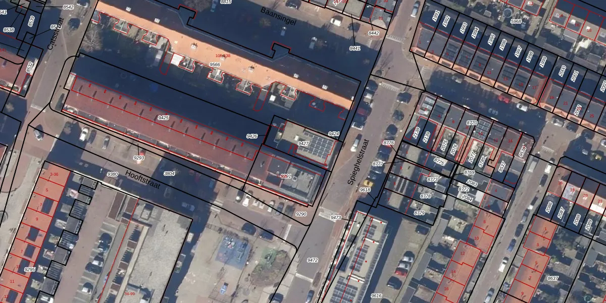 Het perceel waarop Spieghelstraat 12 staat heeft een oppervlakte van 254 m². Dit is een middelgroot perceel. De perceeloppervlakte wordt geregistreerd door het Kadaster. Gedetailleerde informatie over de maten van dit perceel kunt u vinden in het rapport Kadastrale kaart met maatvoering van Spieghelstraat 12.