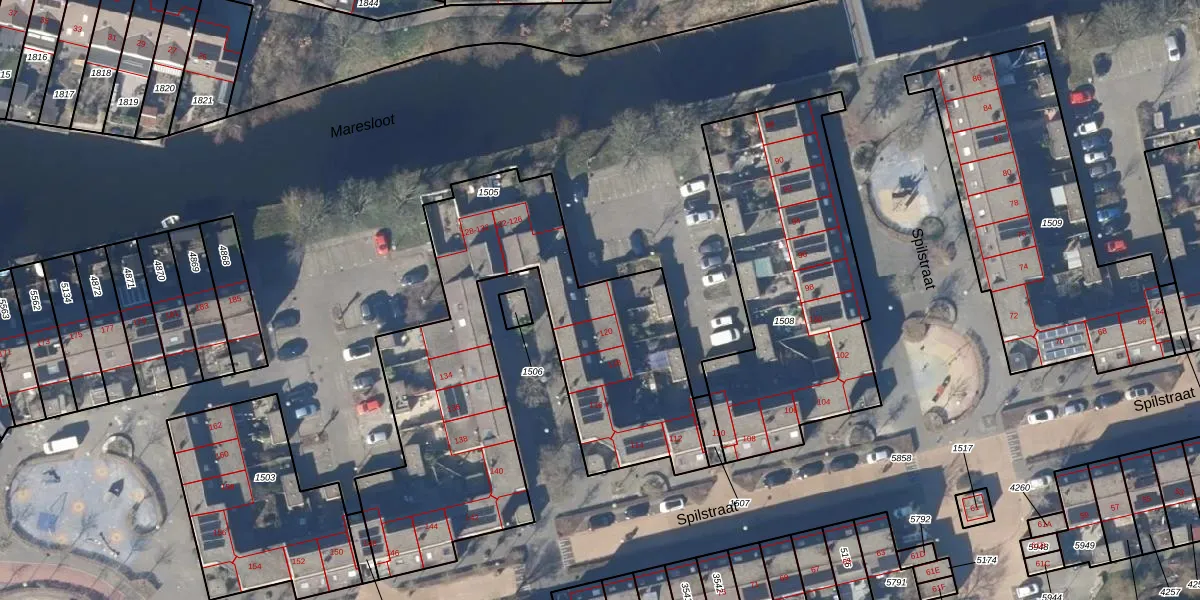 Het perceel waarop Spilstraat 122 staat heeft een oppervlakte van 1884 m². Dit is een zeer groot perceel. De perceeloppervlakte wordt geregistreerd door het Kadaster. Gedetailleerde informatie over de maten van dit perceel kunt u vinden in het rapport Kadastrale kaart met maatvoering van Spilstraat 122.