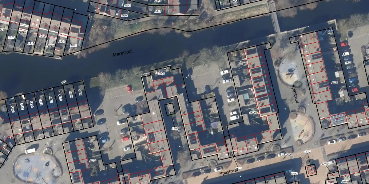 Het perceel waarop Spilstraat 124 staat heeft een oppervlakte van 1884 m². Dit is een zeer groot perceel. De perceeloppervlakte wordt geregistreerd door het Kadaster. Gedetailleerde informatie over de maten van dit perceel kunt u vinden in het rapport Kadastrale kaart met maatvoering van Spilstraat 124.