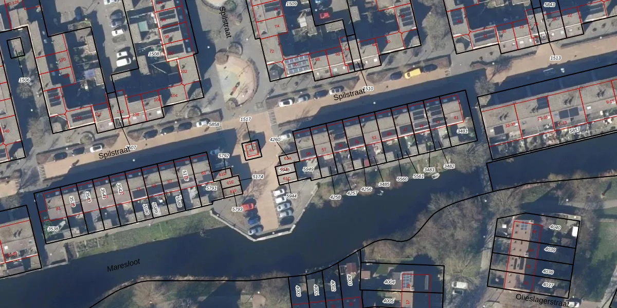 Gebruik de zoekbalk of klik op een perceel voor informatie over de adressen binnen dit perceel.