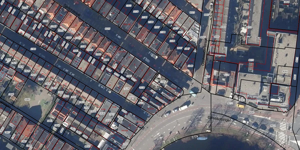 Gebruik de zoekbalk of klik op een perceel voor informatie over de adressen binnen dit perceel.