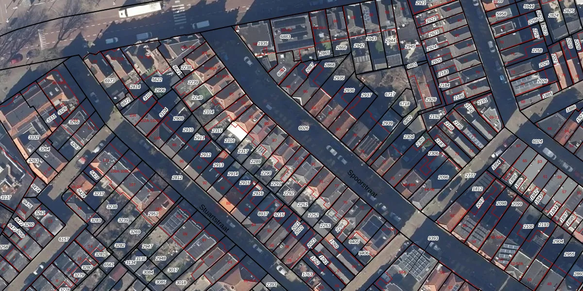 Het perceel waarop Spoorstraat 85 staat heeft een oppervlakte van 104 m². Dit is een middelgroot perceel. De perceeloppervlakte wordt geregistreerd door het Kadaster. Gedetailleerde informatie over de maten van dit perceel kunt u vinden in het rapport Kadastrale kaart met maatvoering van Spoorstraat 85.