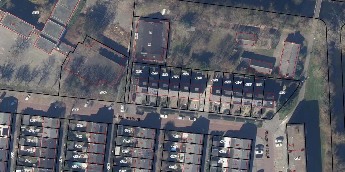Gebruik de zoekbalk of klik op een perceel voor informatie over de adressen binnen dit perceel.