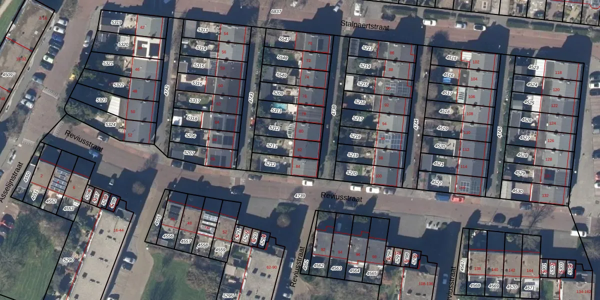 Het perceel waarop Stalpaertstraat 82 staat heeft een oppervlakte van 136 m². Dit is een middelgroot perceel. De perceeloppervlakte wordt geregistreerd door het Kadaster. Gedetailleerde informatie over de maten van dit perceel kunt u vinden in het rapport Kadastrale kaart met maatvoering van Stalpaertstraat 82.
