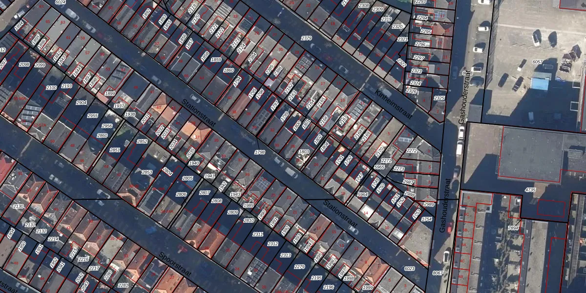Gebruik de zoekbalk of klik op een perceel voor informatie over de adressen binnen dit perceel.