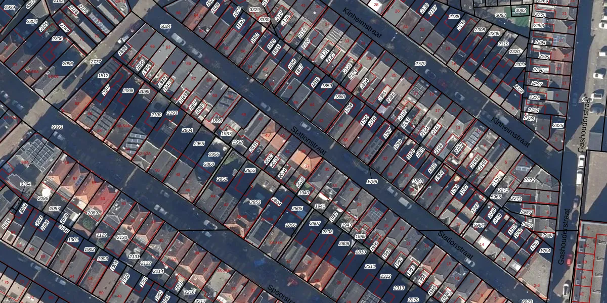 Het perceel waarop Stationstraat 39 staat heeft een oppervlakte van 62 m². Dit is een klein perceel. De perceeloppervlakte wordt geregistreerd door het Kadaster. Gedetailleerde informatie over de maten van dit perceel kunt u vinden in het rapport Kadastrale kaart met maatvoering van Stationstraat 39.