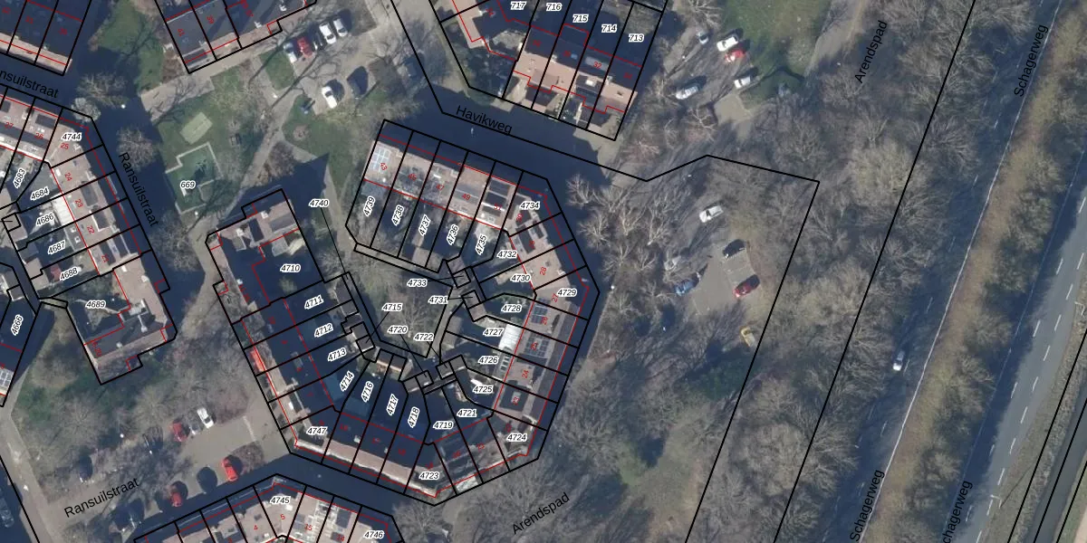 Gebruik de zoekbalk of klik op een perceel voor informatie over de adressen binnen dit perceel.