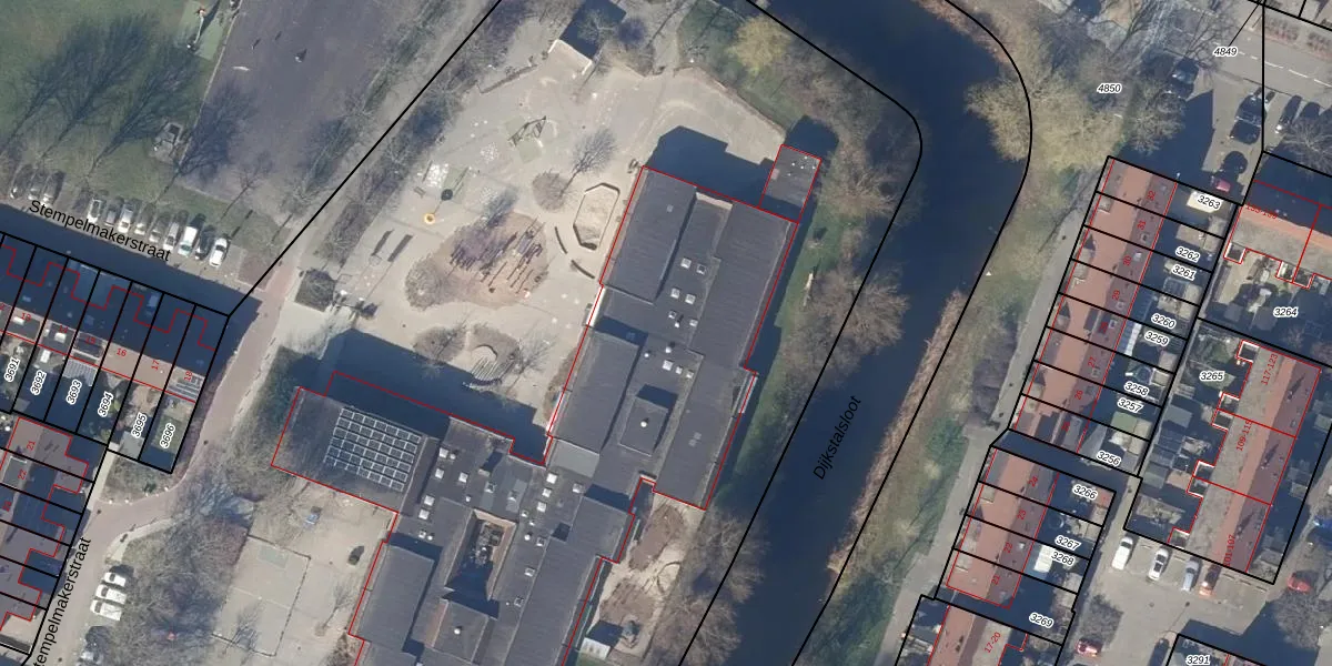 Het perceel waarop Stempelmakerstraat 20 staat heeft een oppervlakte van 1,6 ha. Dit is een zeer groot perceel. De perceeloppervlakte wordt geregistreerd door het Kadaster. Gedetailleerde informatie over de maten van dit perceel kunt u vinden in het rapport Kadastrale kaart met maatvoering van Stempelmakerstraat 20.