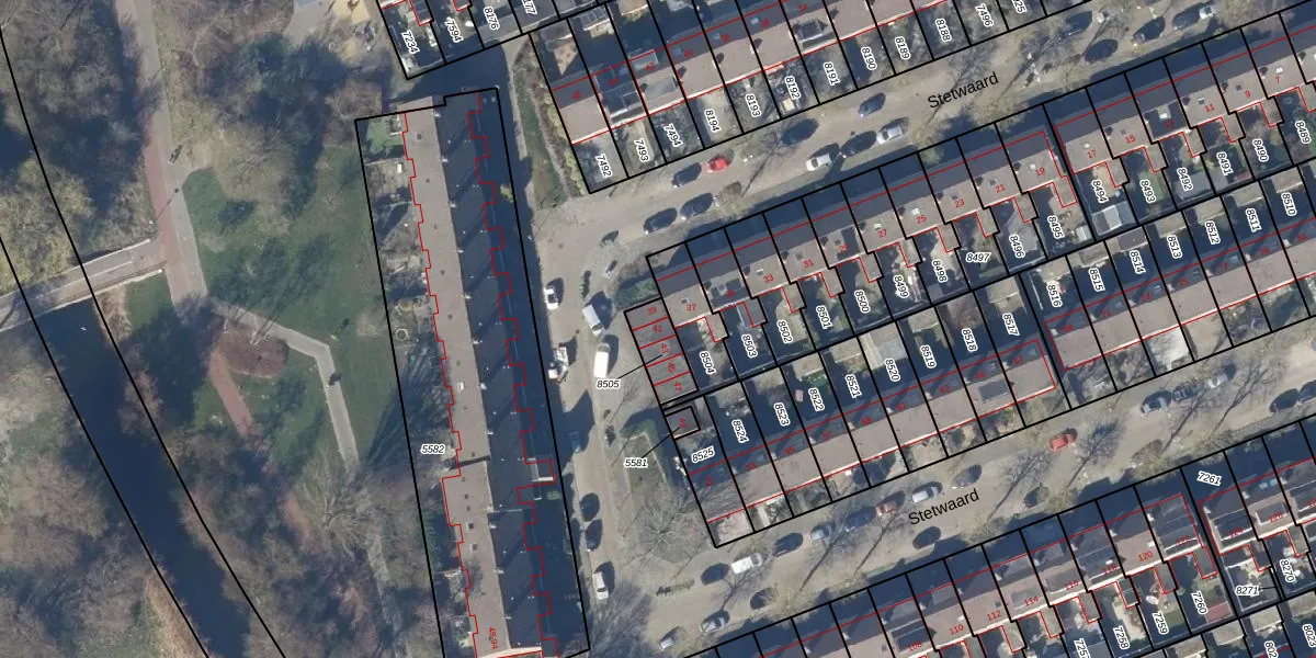 Het perceel waarop Stetwaard 41 staat heeft een oppervlakte van 94 m². Dit is een klein perceel. De perceeloppervlakte wordt geregistreerd door het Kadaster. Gedetailleerde informatie over de maten van dit perceel kunt u vinden in het rapport Kadastrale kaart met maatvoering van Stetwaard 41.