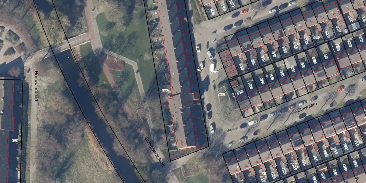 Het perceel waarop Stetwaard 62 staat heeft een oppervlakte van 1928 m². Dit is een zeer groot perceel. De perceeloppervlakte wordt geregistreerd door het Kadaster. Gedetailleerde informatie over de maten van dit perceel kunt u vinden in het rapport Kadastrale kaart met maatvoering van Stetwaard 62.