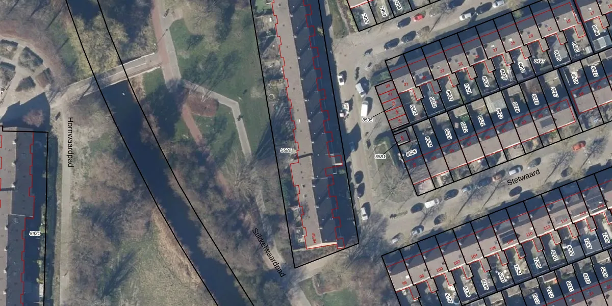 Het perceel waarop Stetwaard 86 staat heeft een oppervlakte van 1928 m². Dit is een zeer groot perceel. De perceeloppervlakte wordt geregistreerd door het Kadaster. Gedetailleerde informatie over de maten van dit perceel kunt u vinden in het rapport Kadastrale kaart met maatvoering van Stetwaard 86.