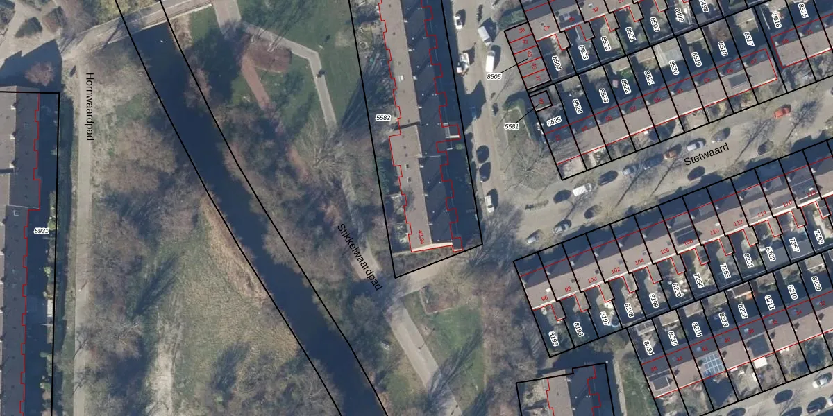 Het perceel waarop Stetwaard 92 staat heeft een oppervlakte van 1928 m². Dit is een zeer groot perceel. De perceeloppervlakte wordt geregistreerd door het Kadaster. Gedetailleerde informatie over de maten van dit perceel kunt u vinden in het rapport Kadastrale kaart met maatvoering van Stetwaard 92.