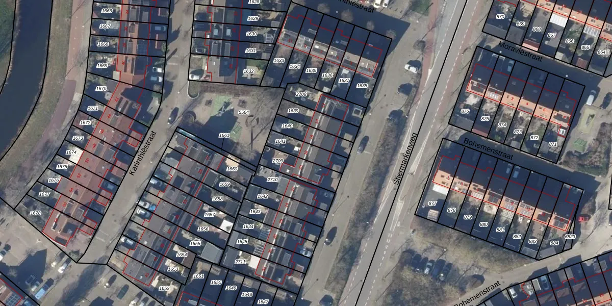 Gebruik de zoekbalk of klik op een perceel voor informatie over de adressen binnen dit perceel.
