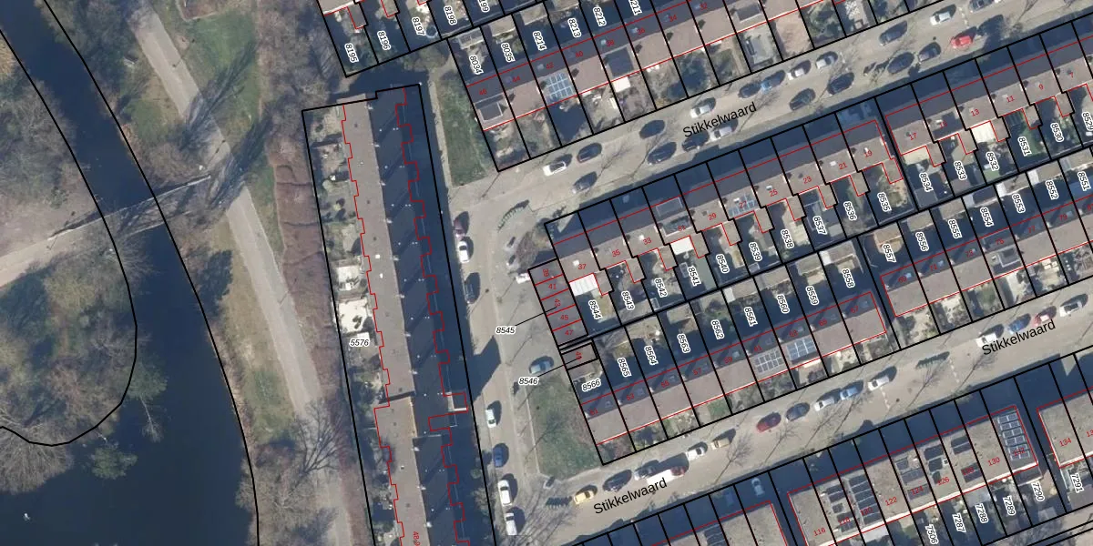 Het perceel waarop Stikkelwaard 39 staat heeft een oppervlakte van 90 m². Dit is een klein perceel. De perceeloppervlakte wordt geregistreerd door het Kadaster. Gedetailleerde informatie over de maten van dit perceel kunt u vinden in het rapport Kadastrale kaart met maatvoering van Stikkelwaard 39.