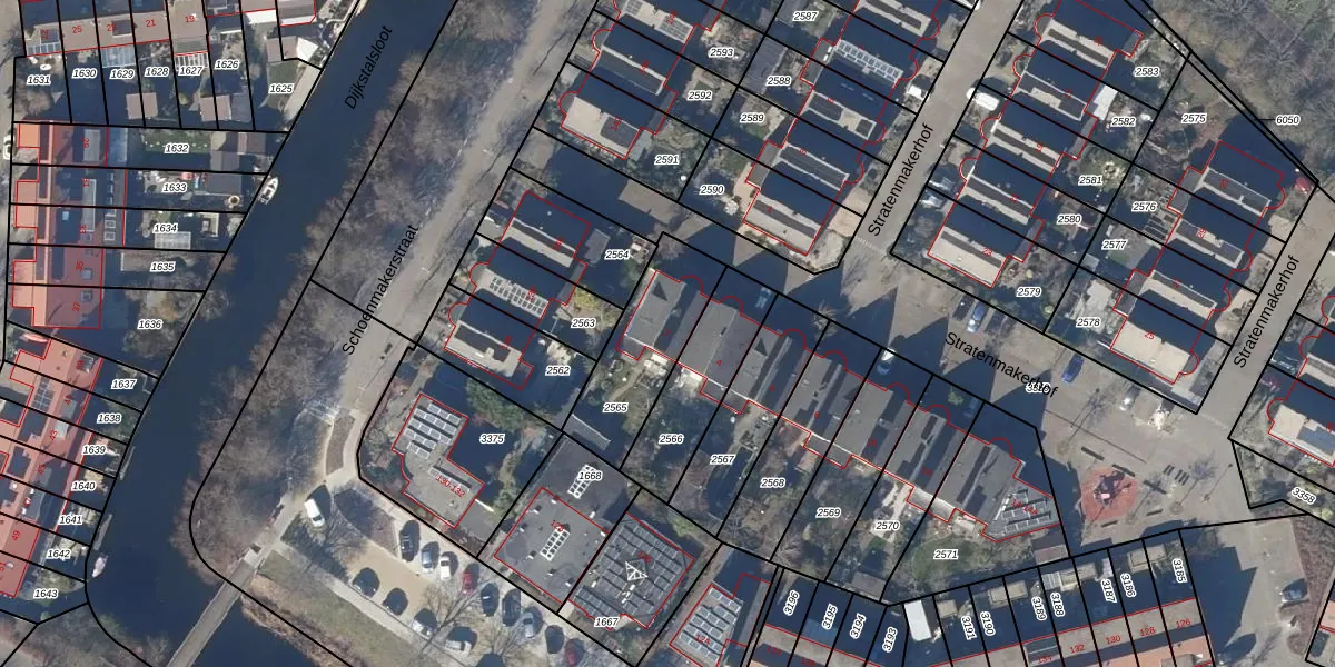 Gebruik de zoekbalk of klik op een perceel voor informatie over de adressen binnen dit perceel.