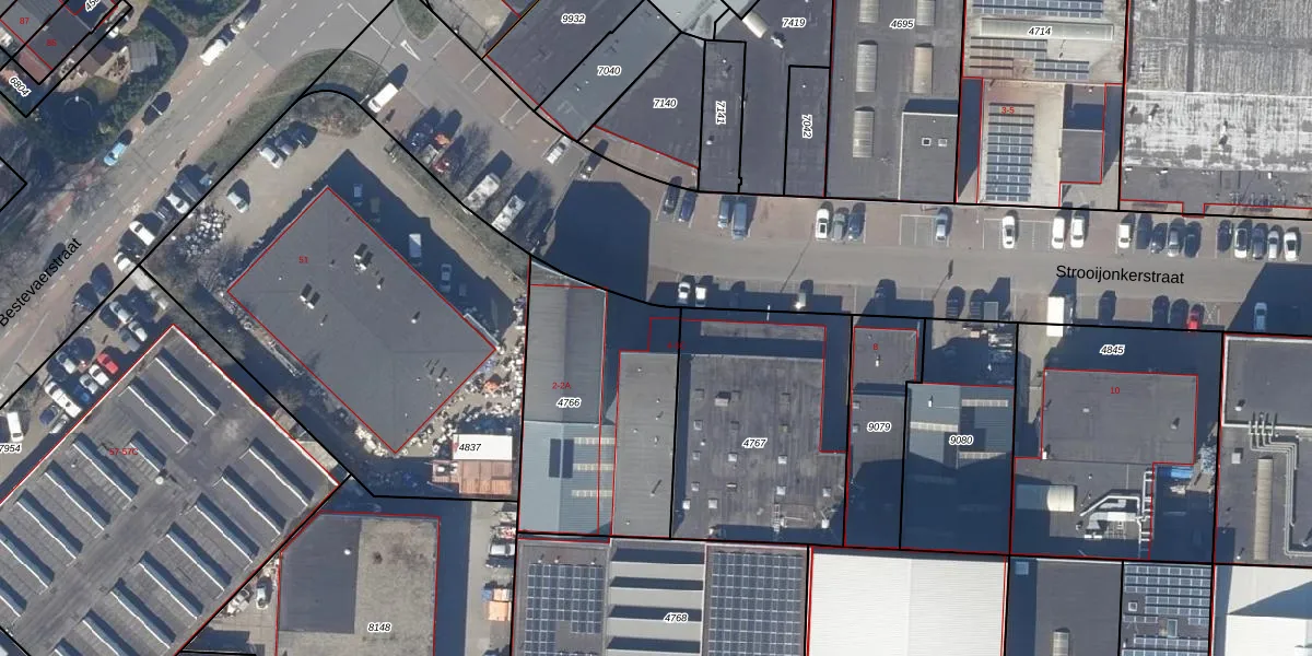 Het perceel waarop Strooijonkerstraat 6-B staat heeft een oppervlakte van 902 m². Dit is een groot perceel. De perceeloppervlakte wordt geregistreerd door het Kadaster. Gedetailleerde informatie over de maten van dit perceel kunt u vinden in het rapport Kadastrale kaart met maatvoering van Strooijonkerstraat 6-B.