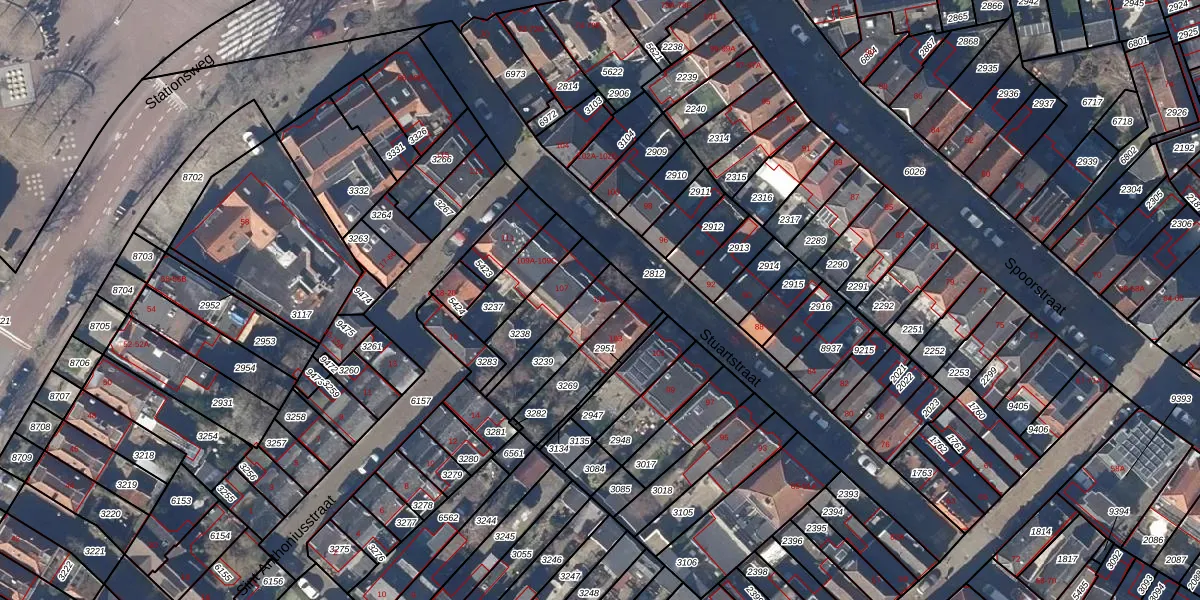 Gebruik de zoekbalk of klik op een perceel voor informatie over de adressen binnen dit perceel.