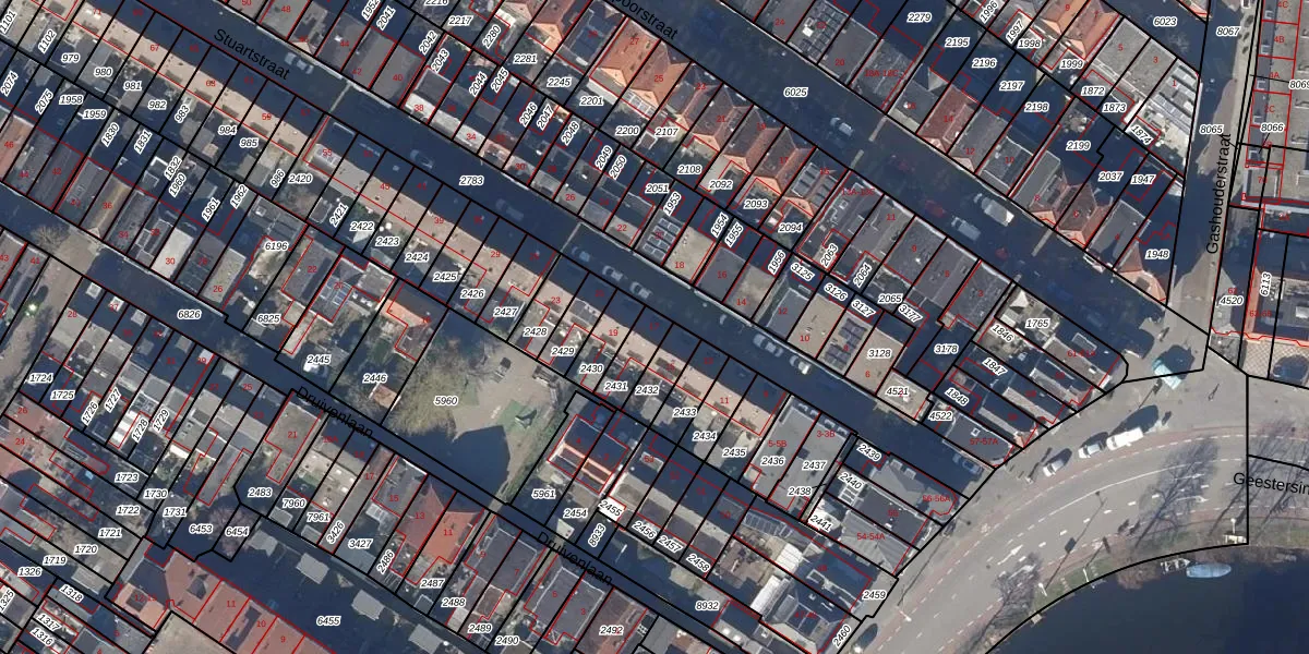 Gebruik de zoekbalk of klik op een perceel voor informatie over de adressen binnen dit perceel.