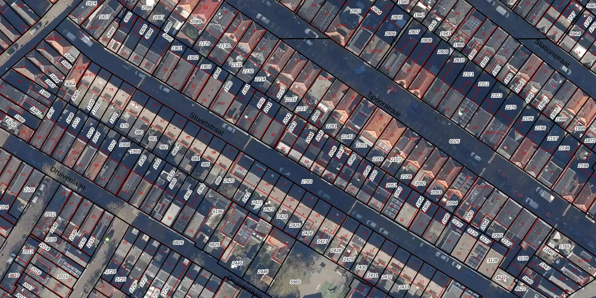 Gebruik de zoekbalk of klik op een perceel voor informatie over de adressen binnen dit perceel.