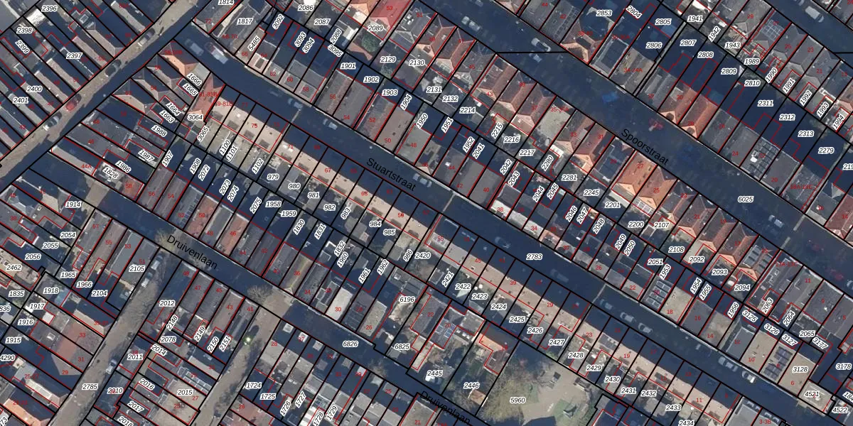 Het perceel waarop Stuartstraat 57 staat heeft een oppervlakte van 78 m². Dit is een klein perceel. De perceeloppervlakte wordt geregistreerd door het Kadaster. Gedetailleerde informatie over de maten van dit perceel kunt u vinden in het rapport Kadastrale kaart met maatvoering van Stuartstraat 57.