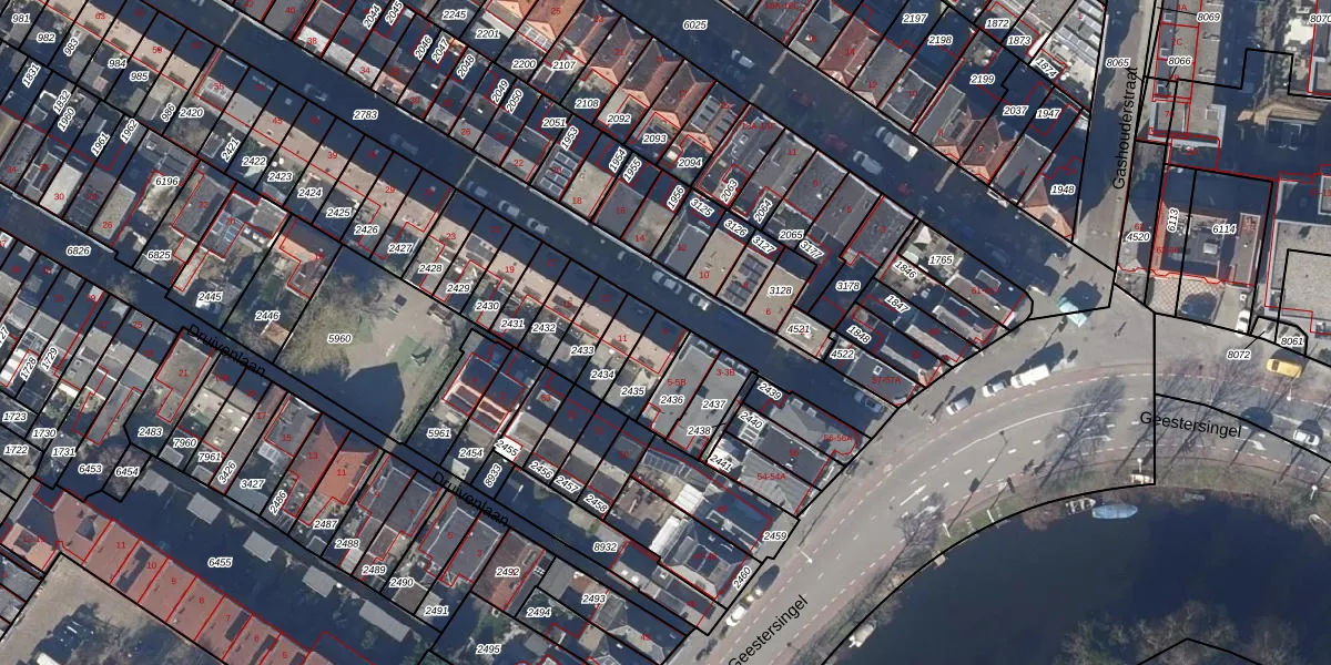 Gebruik de zoekbalk of klik op een perceel voor informatie over de adressen binnen dit perceel.