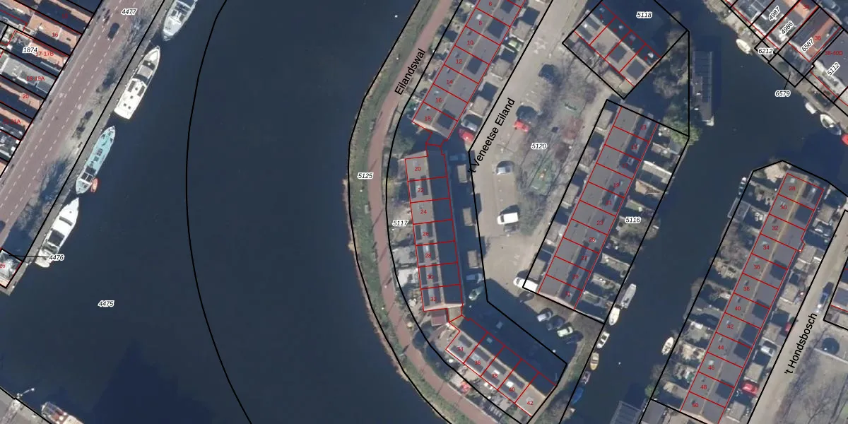 Het perceel waarop 't Veneetse Eiland 24 staat heeft een oppervlakte van 2240 m². Dit is een zeer groot perceel. De perceeloppervlakte wordt geregistreerd door het Kadaster. Gedetailleerde informatie over de maten van dit perceel kunt u vinden in het rapport Kadastrale kaart met maatvoering van 't Veneetse Eiland 24.