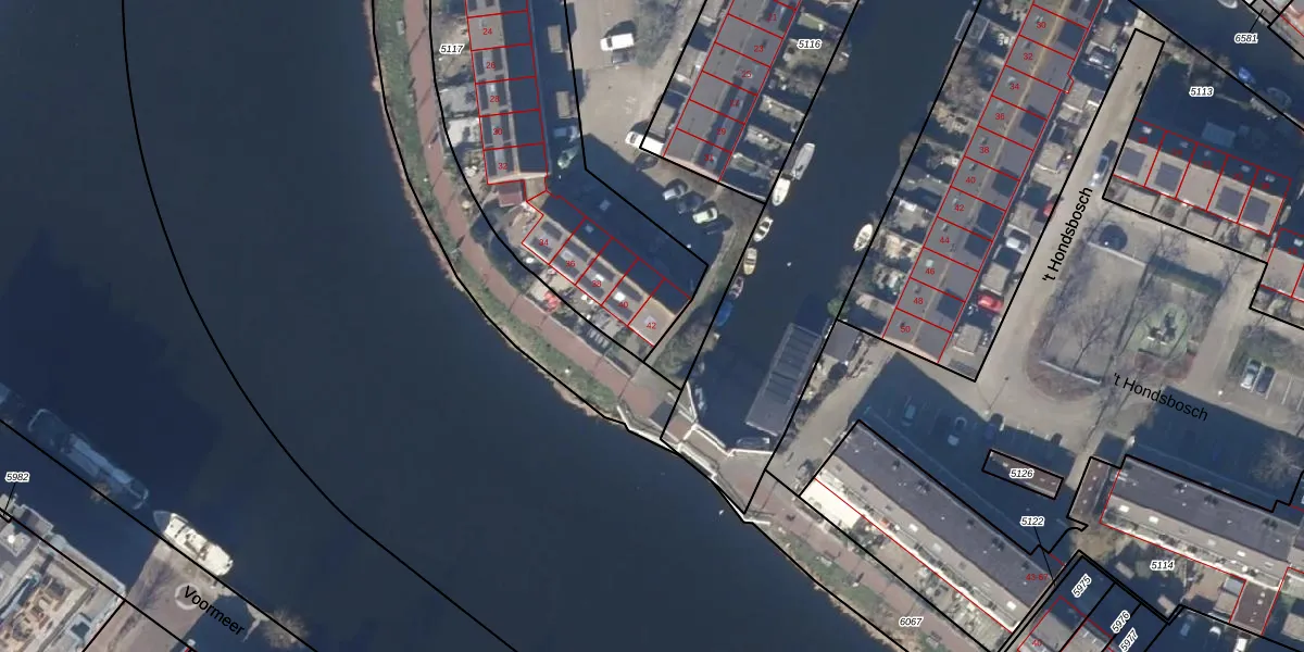 Het perceel waarop 't Veneetse Eiland 42 staat heeft een oppervlakte van 2240 m². Dit is een zeer groot perceel. De perceeloppervlakte wordt geregistreerd door het Kadaster. Gedetailleerde informatie over de maten van dit perceel kunt u vinden in het rapport Kadastrale kaart met maatvoering van 't Veneetse Eiland 42.