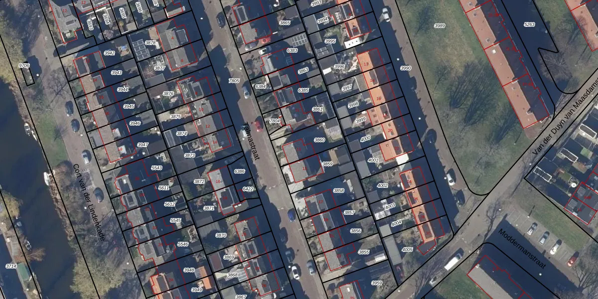 Het perceel waarop Talmastraat 13 staat heeft een oppervlakte van 224 m². Dit is een middelgroot perceel. De perceeloppervlakte wordt geregistreerd door het Kadaster. Gedetailleerde informatie over de maten van dit perceel kunt u vinden in het rapport Kadastrale kaart met maatvoering van Talmastraat 13.