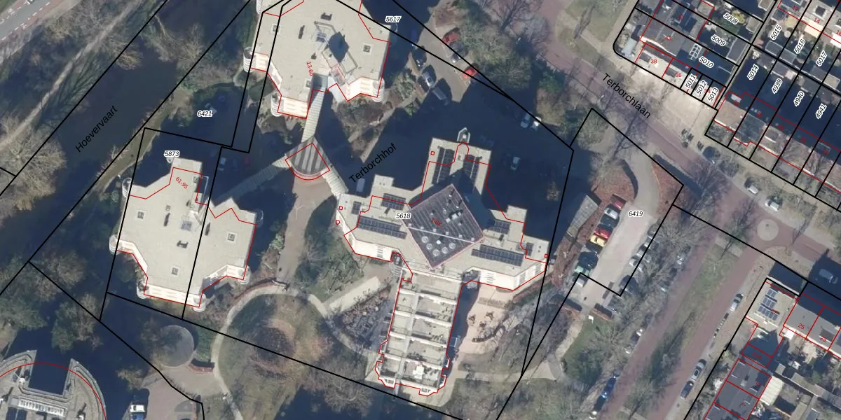 Het perceel waarop Terborchhof 1 staat heeft een oppervlakte van 6202 m². Dit is een zeer groot perceel. De perceeloppervlakte wordt geregistreerd door het Kadaster. Gedetailleerde informatie over de maten van dit perceel kunt u vinden in het rapport Kadastrale kaart met maatvoering van Terborchhof 1.