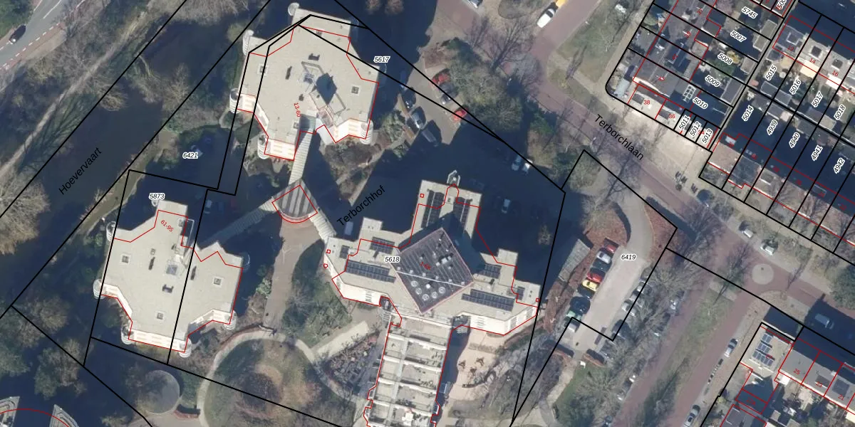 Het perceel waarop Terborchhof 2-A staat heeft een oppervlakte van 6202 m². Dit is een zeer groot perceel. De perceeloppervlakte wordt geregistreerd door het Kadaster. Gedetailleerde informatie over de maten van dit perceel kunt u vinden in het rapport Kadastrale kaart met maatvoering van Terborchhof 2-A.