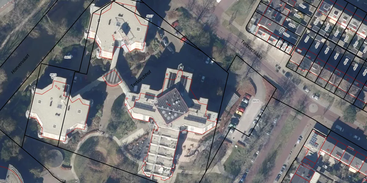 Het perceel waarop Terborchhof 3-C staat heeft een oppervlakte van 6202 m². Dit is een zeer groot perceel. De perceeloppervlakte wordt geregistreerd door het Kadaster. Gedetailleerde informatie over de maten van dit perceel kunt u vinden in het rapport Kadastrale kaart met maatvoering van Terborchhof 3-C.