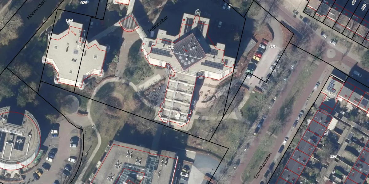 Het perceel waarop Terborchhof 4-G staat heeft een oppervlakte van 6202 m². Dit is een zeer groot perceel. De perceeloppervlakte wordt geregistreerd door het Kadaster. Gedetailleerde informatie over de maten van dit perceel kunt u vinden in het rapport Kadastrale kaart met maatvoering van Terborchhof 4-G.