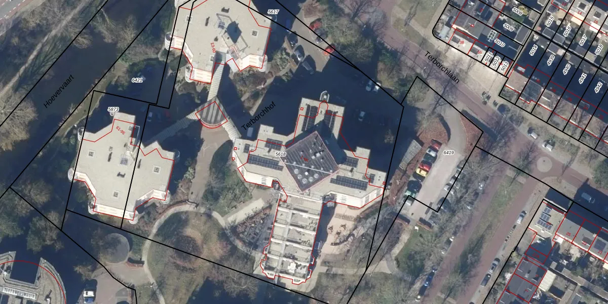 Het perceel waarop Terborchhof 4-M staat heeft een oppervlakte van 6202 m². Dit is een zeer groot perceel. De perceeloppervlakte wordt geregistreerd door het Kadaster. Gedetailleerde informatie over de maten van dit perceel kunt u vinden in het rapport Kadastrale kaart met maatvoering van Terborchhof 4-M.