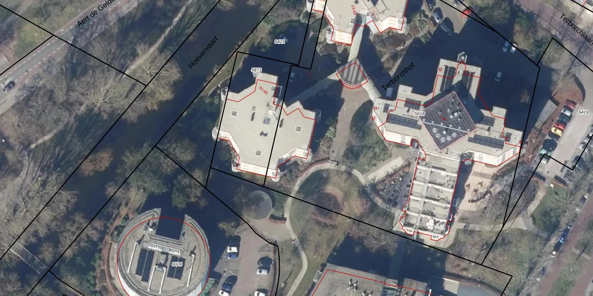 Het perceel waarop Terborchhof 83 staat heeft een oppervlakte van 6202 m². Dit is een zeer groot perceel. De perceeloppervlakte wordt geregistreerd door het Kadaster. Gedetailleerde informatie over de maten van dit perceel kunt u vinden in het rapport Kadastrale kaart met maatvoering van Terborchhof 83.