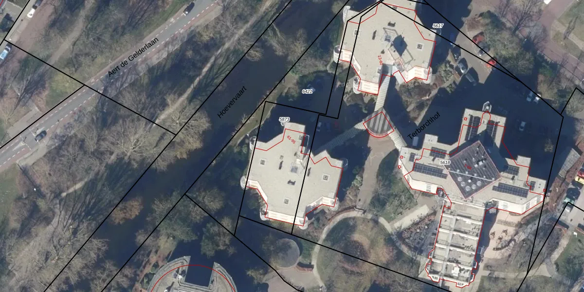 Het perceel waarop Terborchhof 88 staat heeft een oppervlakte van 940 m². Dit is een groot perceel. De perceeloppervlakte wordt geregistreerd door het Kadaster. Gedetailleerde informatie over de maten van dit perceel kunt u vinden in het rapport Kadastrale kaart met maatvoering van Terborchhof 88.