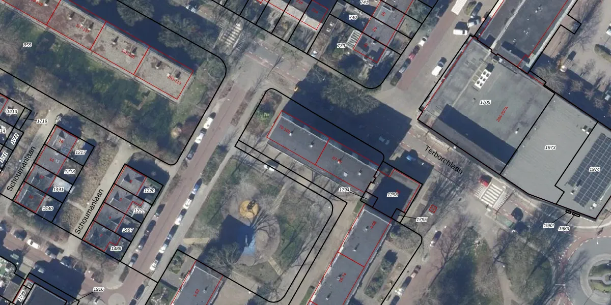 Het perceel waarop Terborchlaan 97 staat heeft een oppervlakte van 3536 m². Dit is een zeer groot perceel. De perceeloppervlakte wordt geregistreerd door het Kadaster. Gedetailleerde informatie over de maten van dit perceel kunt u vinden in het rapport Kadastrale kaart met maatvoering van Terborchlaan 97.